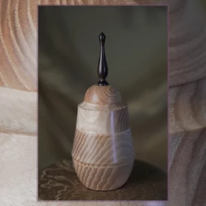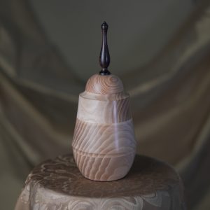 This exquisite pet urn will do the justice to your special friend and remind you of them in a dignified way, whenever you look back at it. Handmade of also hand-picked Ash pieces, the urn benefits from the lightness of the natural wood colour firmly contrasted with the darkness of its elegant lid ornament. Made of precious exotic Ebony wood, this piece in itself is a little treasure, worthy of its commemorative function and of your projected affection too. It’s an overall beautiful vessel, matt-finished with the subtle, natural shine.