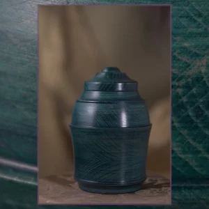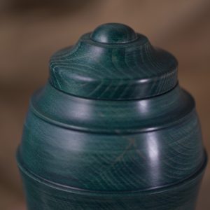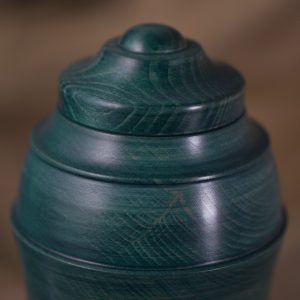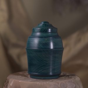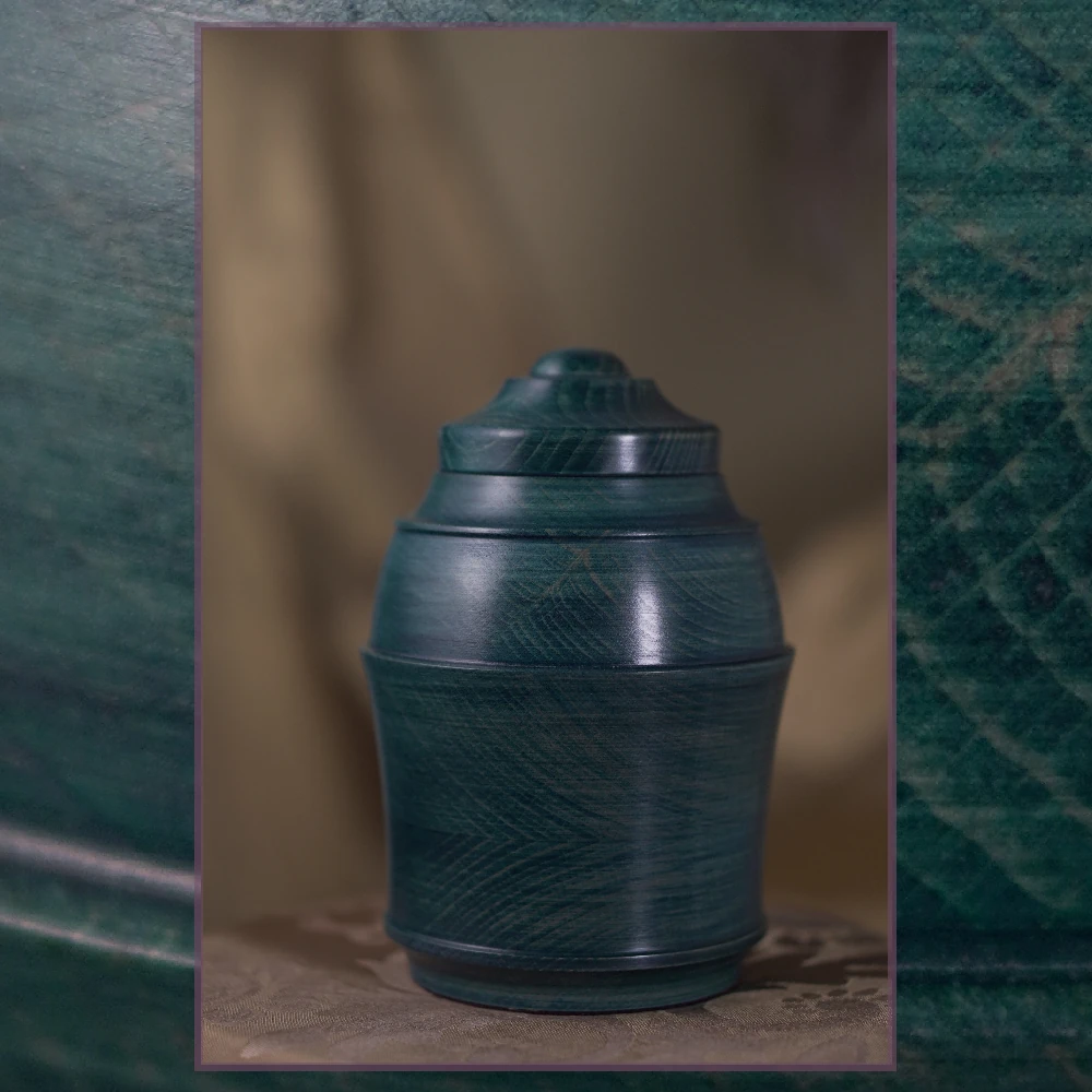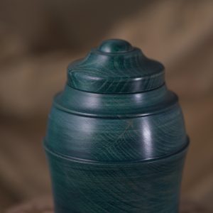 This wonderful pet urn will do the justice to your special friend and remind you of them in a dignified way, whenever you look back at it. Handmade of strong Beech wood, the urn captivates with a deep teal hue and its lovely, slightly rustic look and feel, owing to the natural wood pattern. The timeless design has been beautifully completed with the lid ornament made of exotic wood and the subtle shine of our natural matt-finish.