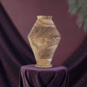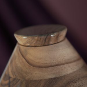 This impressive urn for ashes will do the justice to your loved one and help you say goodbye in an exceptional, dignified way. Handmade of dreamy Walnut wood, the urn captivates with its artisan design resembling a diamond and with its uniquely eye-catching wood pattern under several coats of glossy varnish.