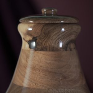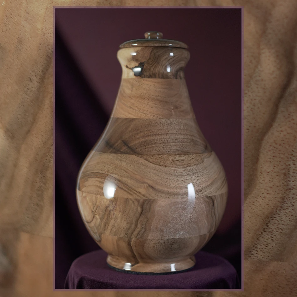 - The way in which attributes and quality come together in this urn impresses easily, bringing regality in mind. It’s substantial, nostalgic and made of solid dear Walnut wood. The effect is squared with the high-gloss finish, which makes the urn very smooth to touch and shiny in an elegant way.