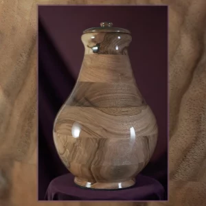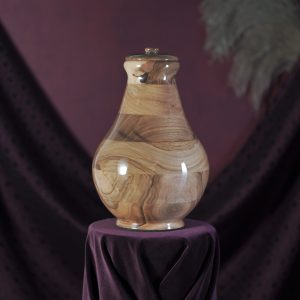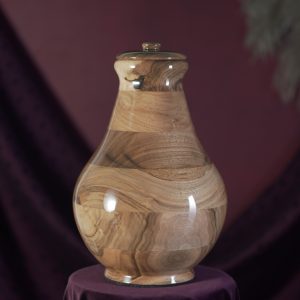 This impressive urn for ashes will do the justice to your loved one and help you say goodbye in an exceptional, dignified way. Handmade of dreamy Walnut wood, the urn captivates with its artisan design and uniquely eye-catching wood pattern under several coats of glossy varnish.