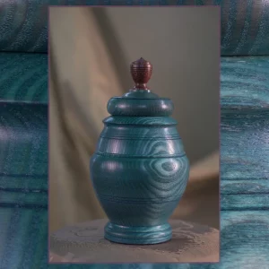 This exquisite pet urn will do the justice to your special friend and remind you of them in a dignified way, whenever you look back at it. Handmade of aesthetically pleasing Ash wood, the urn delights with its naturally eye-catching pattern and a nostalgic stain hue. The artisan shape has been beautifully completed with a playful yet elegant lid ornament made of exotic Wenge wood and the subtle shine of our natural matt-finish.