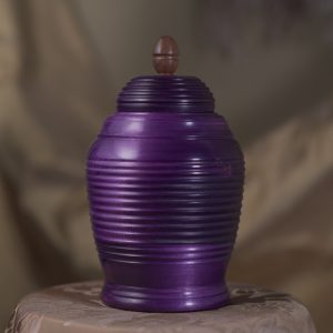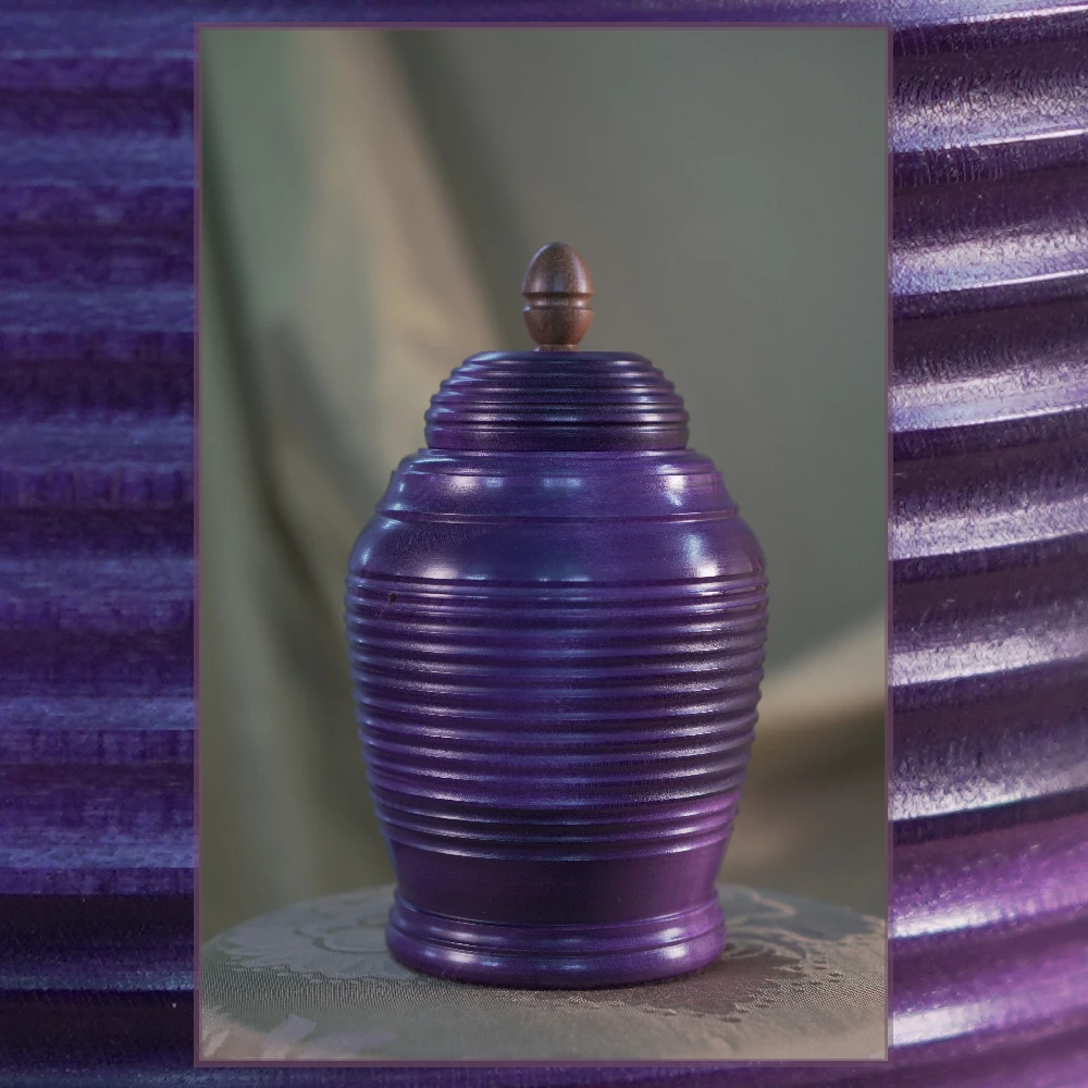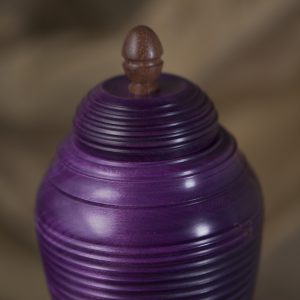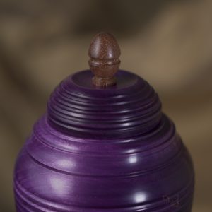 This stunning pet urn will do the justice to your special friend and remind you of them in a dignified way, whenever you look back at it. Handmade of naturally light Maple wood, the urn turned rich and dark when stained to a gorgeous purple hue, reminding us of a legendary Mulberry tree (see below for design inspiration). The modern form has been beautifully completed with the lid ornament made of exotic wood and the subtle shine of our natural matt-finish.