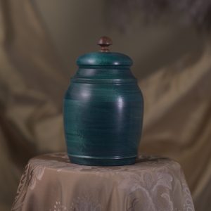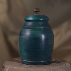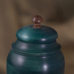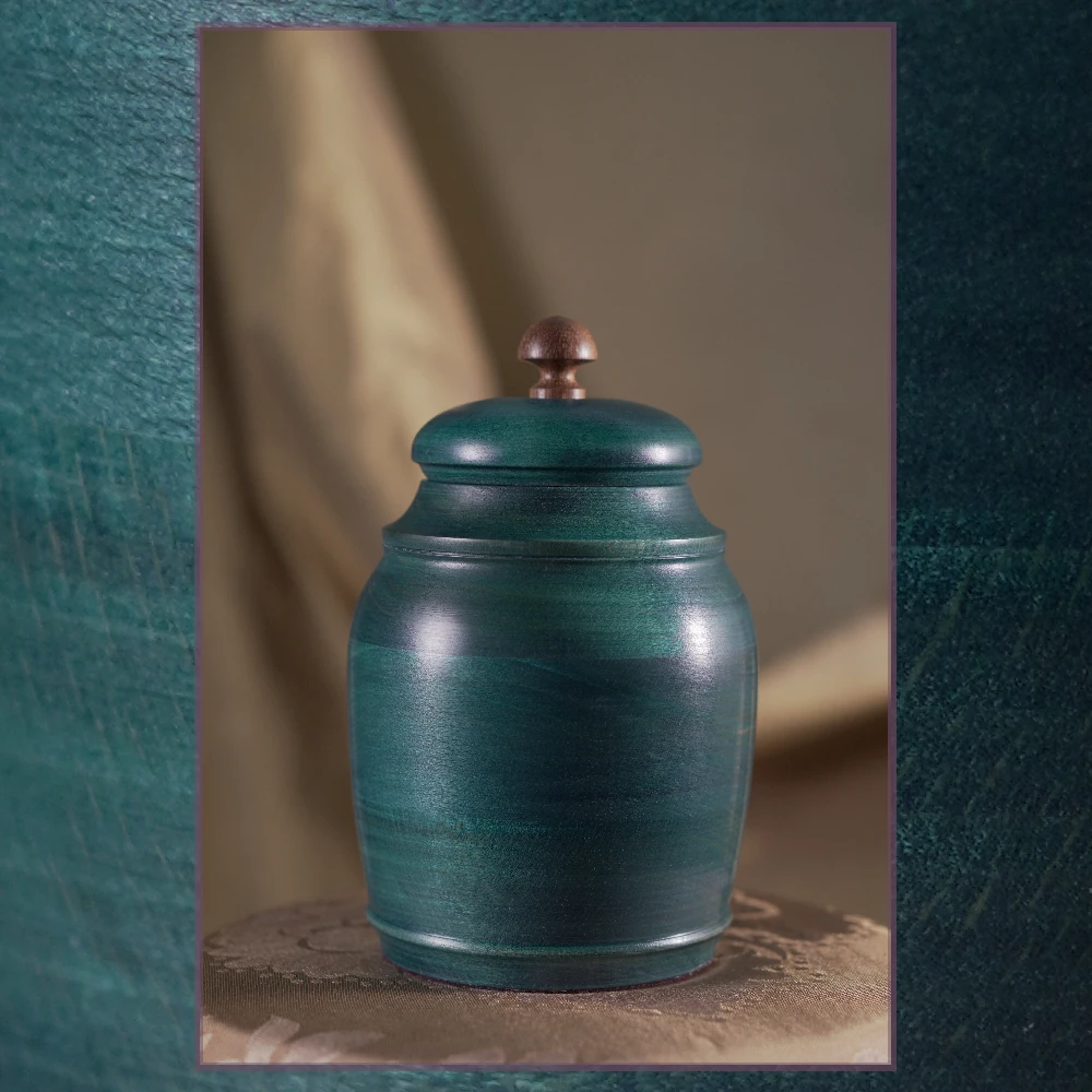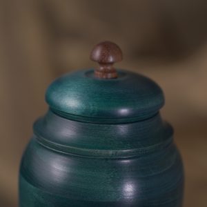 This wonderful pet urn will do the justice to your special friend and remind you of them in a dignified way, whenever you look back at it. Handmade of strong Beech wood, the urn captivates with a deep teal hue and its lovely, slightly rustic look and feel, owing to the natural wood pattern. The timeless design has been beautifully completed with the lid ornament made of exotic wood and the subtle shine of our natural matt-finish.