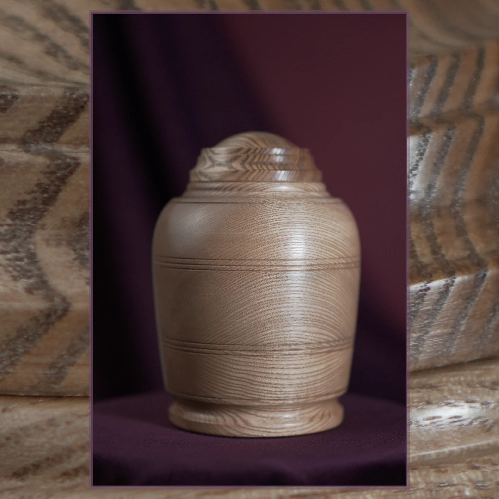 This exquisite pet urn will do the justice to your special friend and remind you of them in a dignified way, whenever you look back at it. Handmade of aesthetically pleasing Ash wood, the urn impresses with its naturally soothing pattern and a nostalgic stain hue. The artisan shape with a powerful inspiration (see below) has been beautifully completed with the subtle shine of our natural matt-finish.