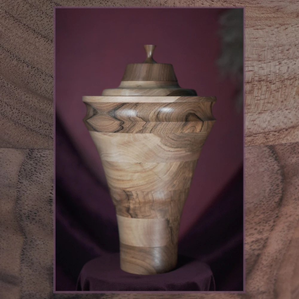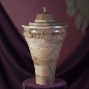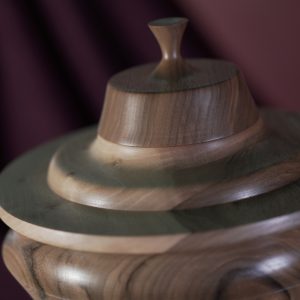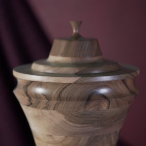 This impressive urn for ashes will do the justice to your loved one and help you say goodbye in an exceptional, dignified way. Handmade of dreamy Walnut wood, the urn captivates with its artisan design and uniquely nostalgic wood pattern. Finished to a high standard with wax for a smooth surface, subtle shine and to bring out the natural beauty of the wood.
