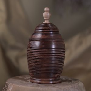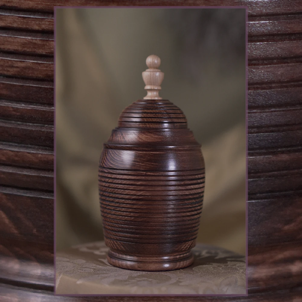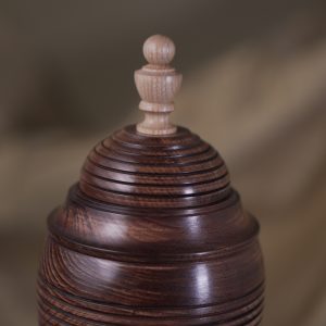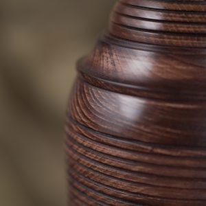 This modern pet urn will do the justice to your special friend and remind you of them in a dignified way, whenever you look back at it. Handmade of strong Beech wood, the urn captivates with its multiple grooves and a warm dark stain hue. The timeless, proportionate design has been beautifully surmounted with the lid ornament made of classic Oak wood and with the subtle shine of our natural matt-finish.